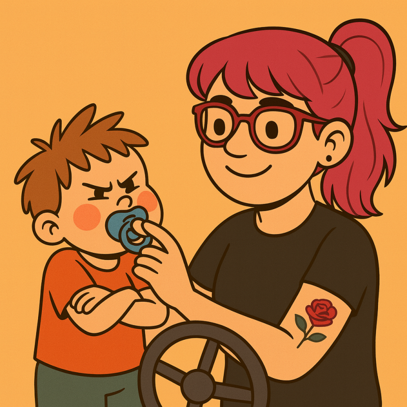 Es fühlt sich an, als gäbe es zwei Versionen von mir. Da ist das trotzige Kleinkind, das unbedingt schreien will, mit verschränkten Armen und rotem Kopf. Und daneben steht mein erwachsenes Ich, das tief durchatmet und sagt: „Okay, ich sehe dich. Aber du bekommst jetzt nicht das Steuer.“ Manchmal stelle ich mir das bildlich vor: Mein inneres Kind bekommt von mir einen Schnuller in die Hand gedrückt, während ich das Lenkrad festhalte.